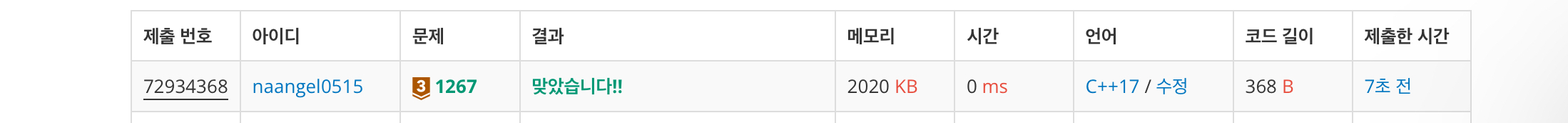 문제 링크입니다. https://www.acmicpc.net/problem/1267