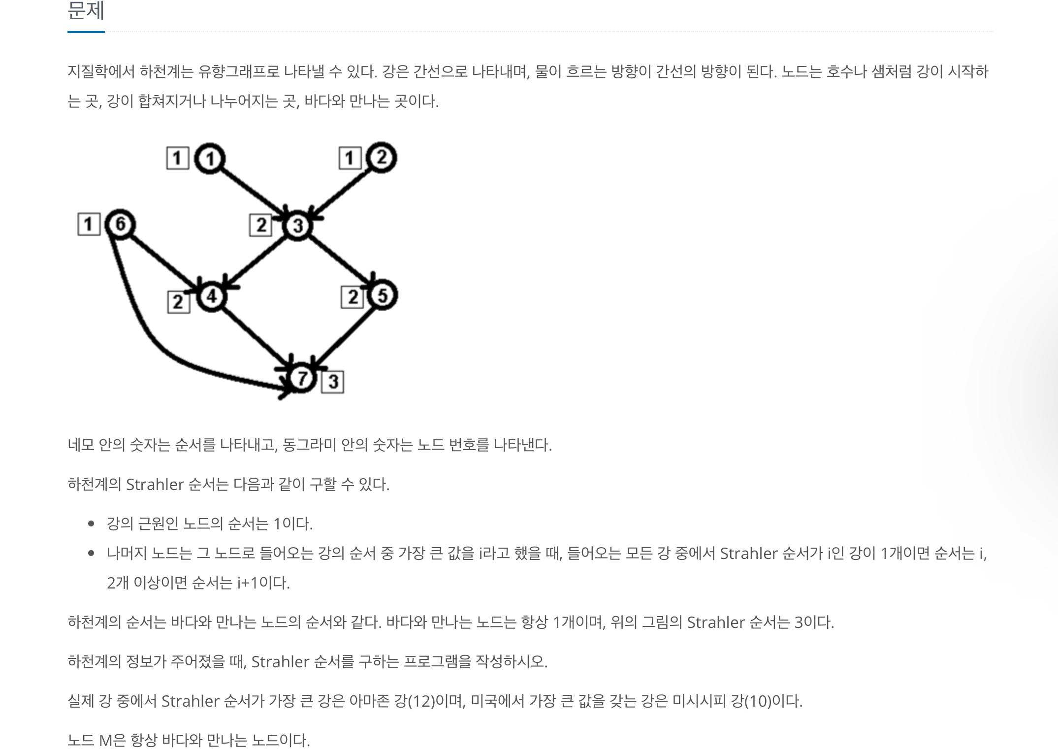 이때 Strahler 값의 최종 갱신은 queue에서 해당 강 번호를 pop을 한 뒤 해야합니다.