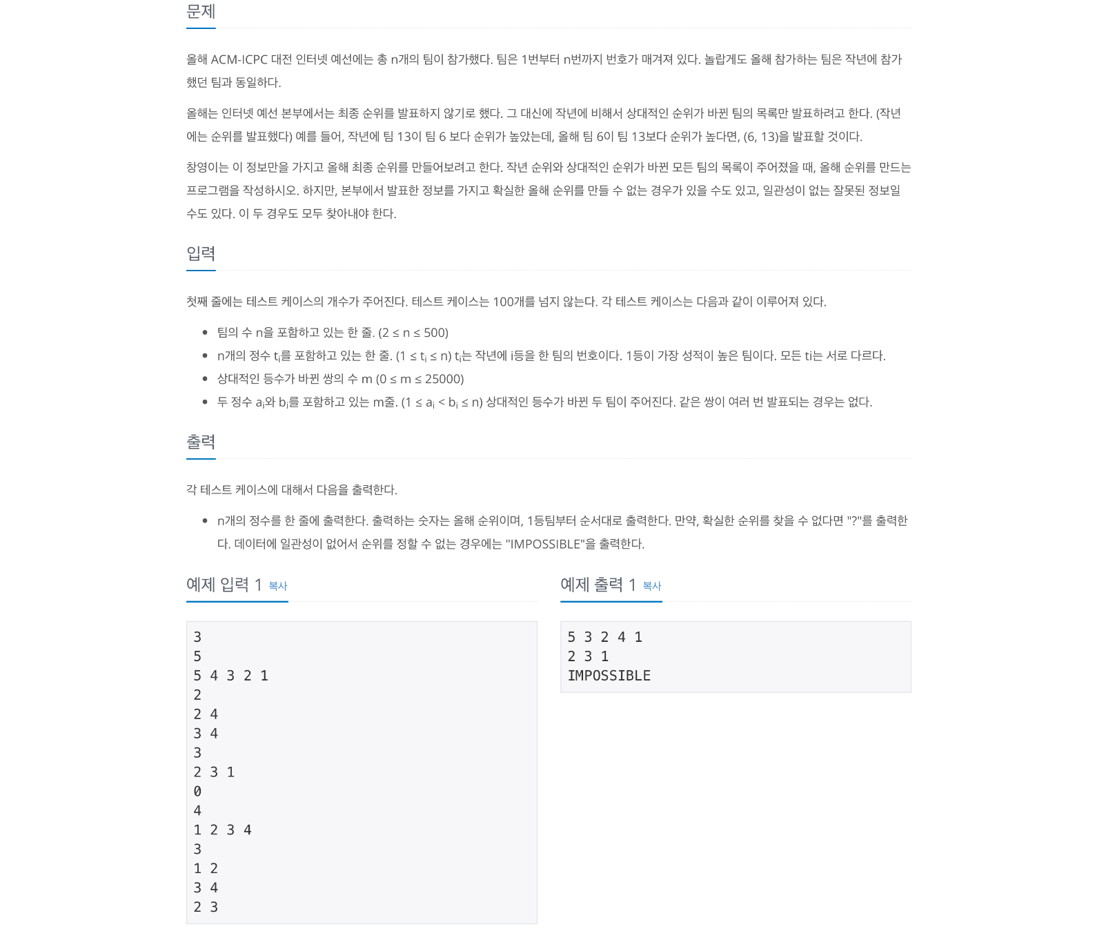 문제 링크입니다. https://www.acmicpc.net/problem/3665