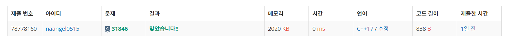 | 문제 링크입니다. https://www.acmicpc.net/problem/31846 |
