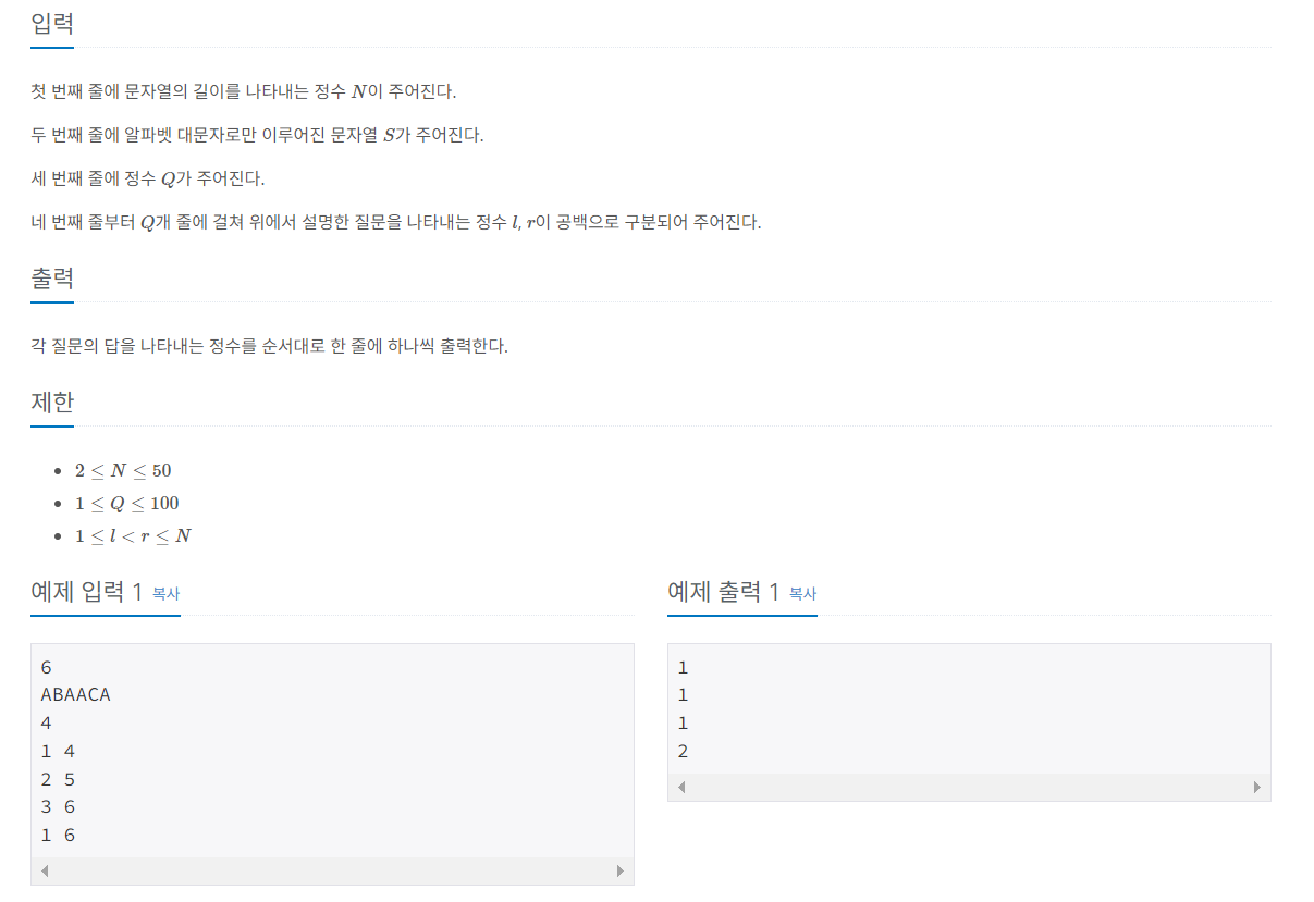 먼저, 문자열의 길이와 주어지는 범위의 수가 적기에 모든 경우를 확인해봐도 시간초과가 되지 않습니다.