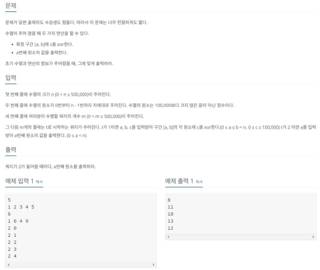 | 백준 12844 - XOR(C++) (0) | 2024.06.07 |
