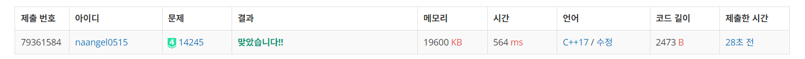 | 문제 링크입니다. https://www.acmicpc.net/problem/14245 |