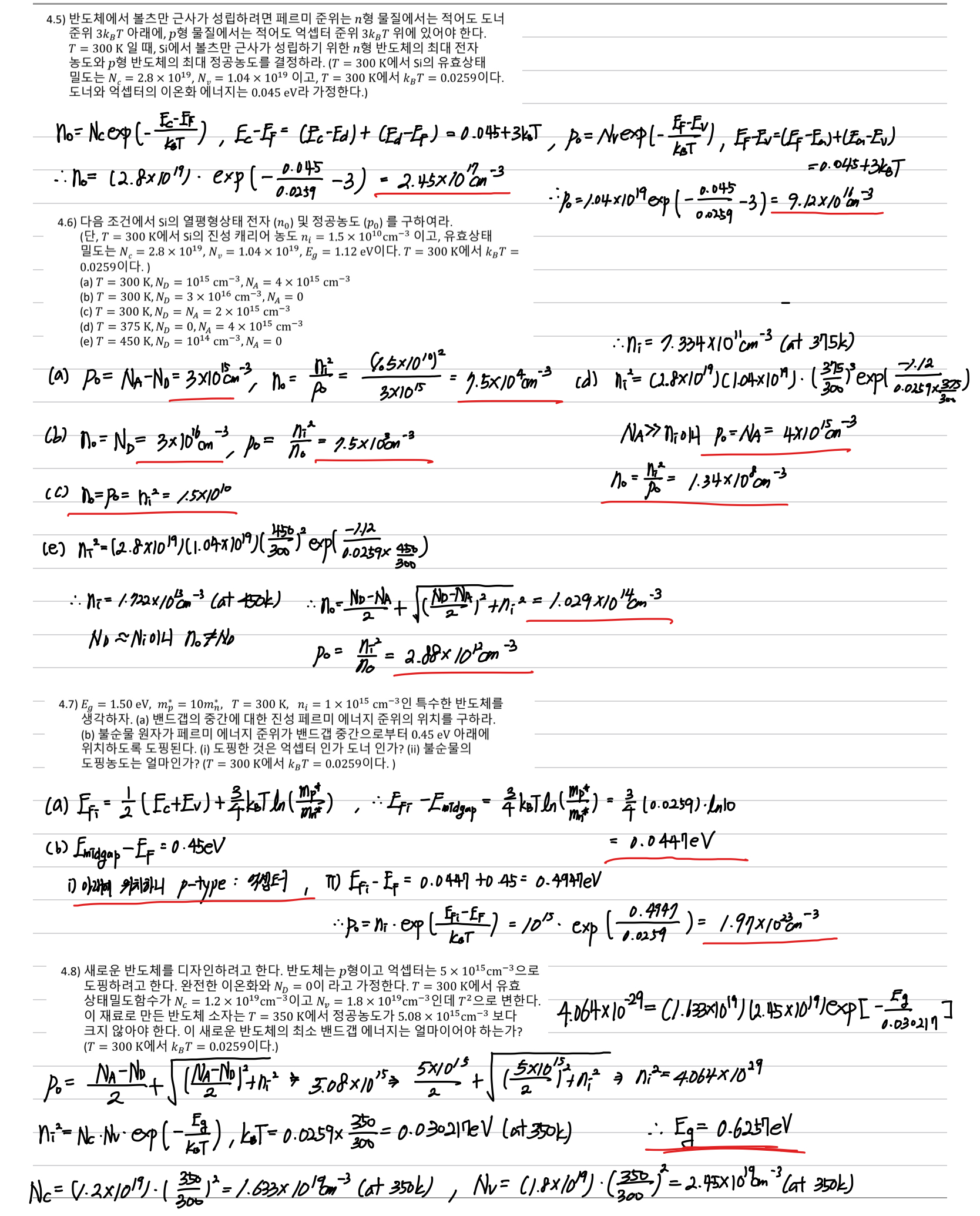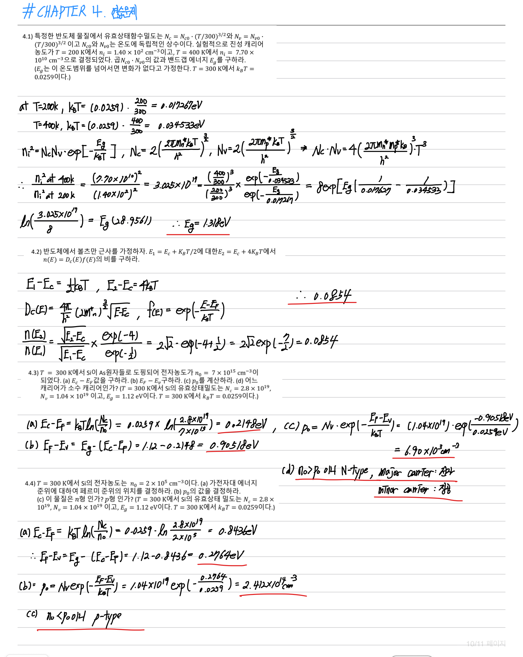 물리전자 Chapter4 - 평형상태의 캐리어 농도와 페르미 에너지(문제 풀이) 본문
