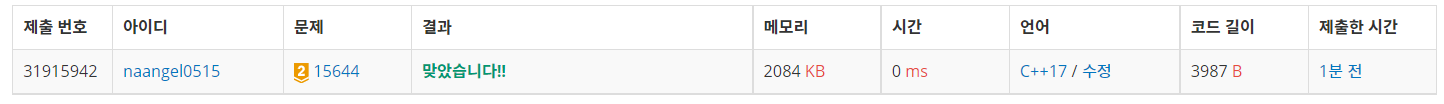 문제 링크입니다 https://www.acmicpc.net/problem/15644