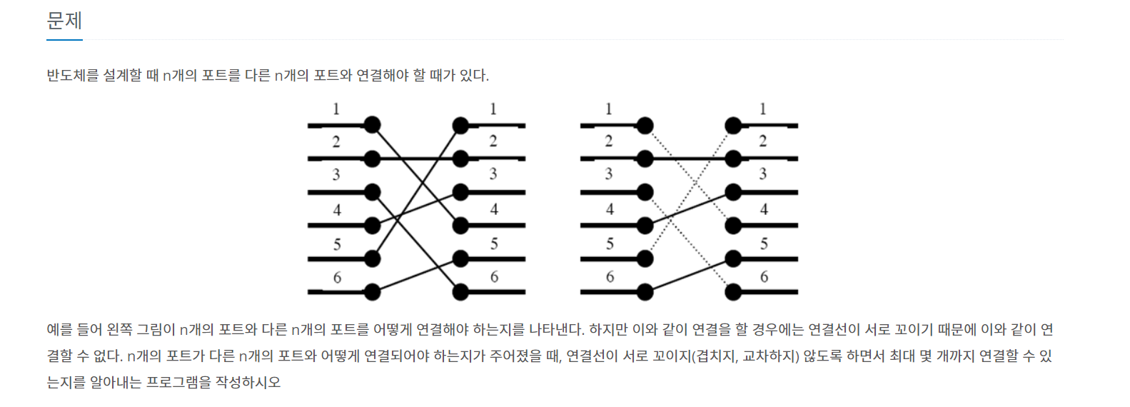 선을 꼬이지 않고 연결할 수 있는 최대 갯수를 구하는 방법