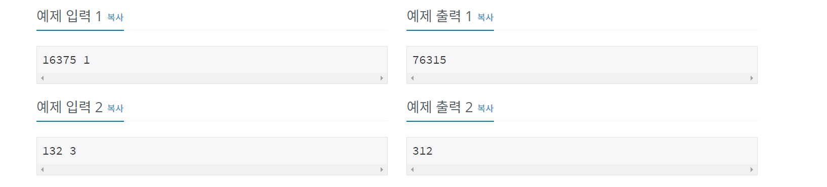 N을 자릿수를 바꿔야하기에 string으로 선언해서 문자열로 사용했습니다.