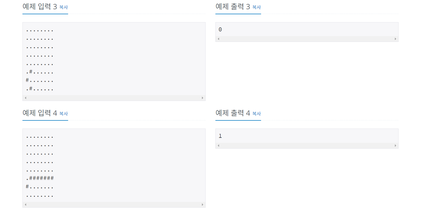 2. 벽의 갯수가 0개라면 1출력, 아니면 탐색을 시작합니다.