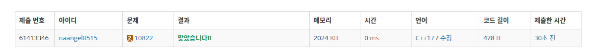 문제 링크입니다. https://www.acmicpc.net/problem/10822