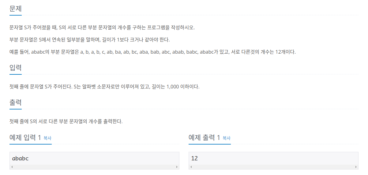 11478번: 서로 다른 부분 문자열의 개수