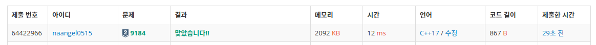문제 링크입니다. https://www.acmicpc.net/problem/9184